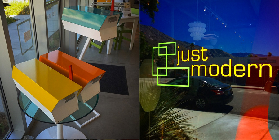 With Palm Springs less than two hours away, Laura and I decided to road trip! First stop, Chris Mobley’s Just Modern store. During the modbox Kickstarter Chris said “We would love to carry these in our store and online.” Guess what? You can buy a modbox at Just Modern in Palm Springs California!