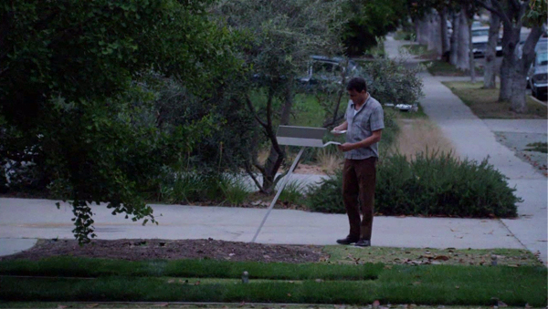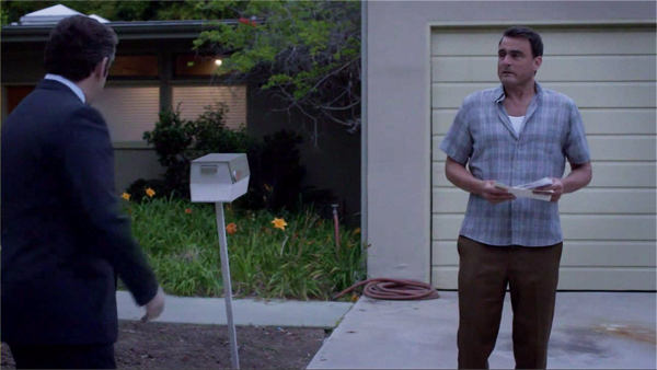 The scene opened with a shot of Masters’ neighbor Paul opening the modbox to get the mail. The modbox is in a couple shots during their conversation and the closing shot of Masters’ comforting Paul! The scene was shot during dusk, so I’ve brightened the photos a bit.